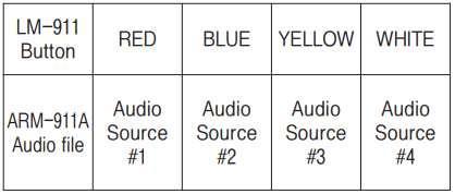 • Control button for ARM-911A’s audio file (audio source #1~#4) When you push the button, audio file will be played upon the assigned button.